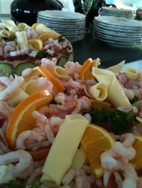 Cafikets Mimosa: Handskalade räkor, Mimosasallad, Skagern/räkröra 6 pers 600kr, 9 pers 870kr, 12 pers 1100kr